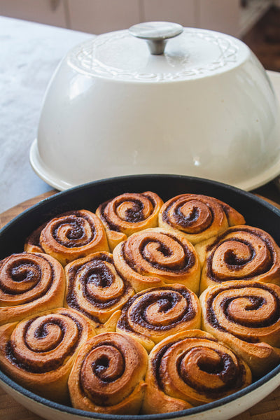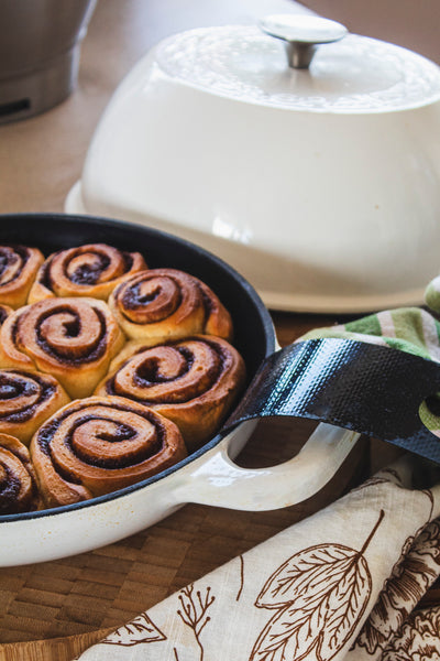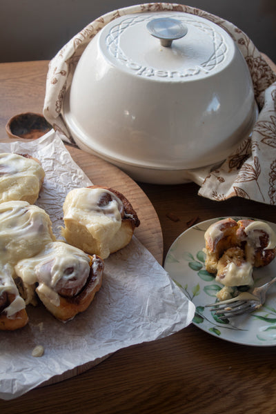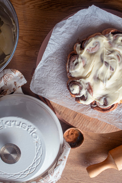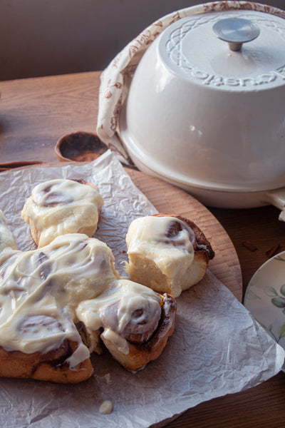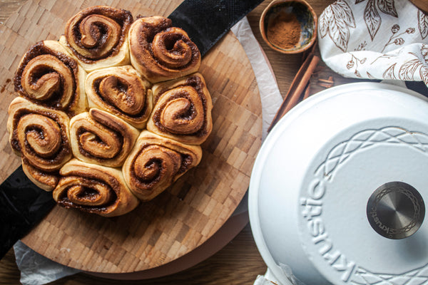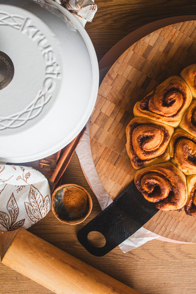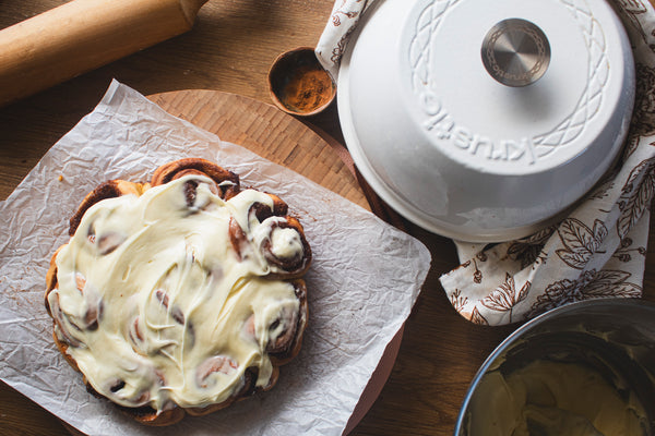 Baking cinnamon rolls in your krustic oven yields a super soft, evenly cooked and nicely brown batch of deliciousness. This recipe only has one rise so it takes about 3 hours from start to finish, great for brunch!