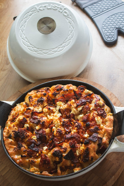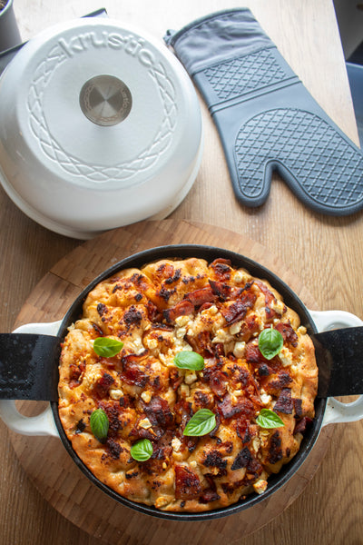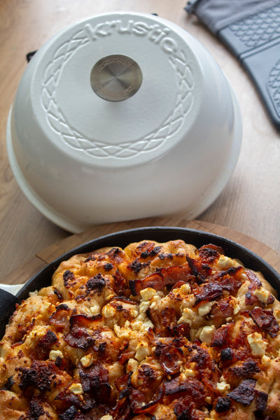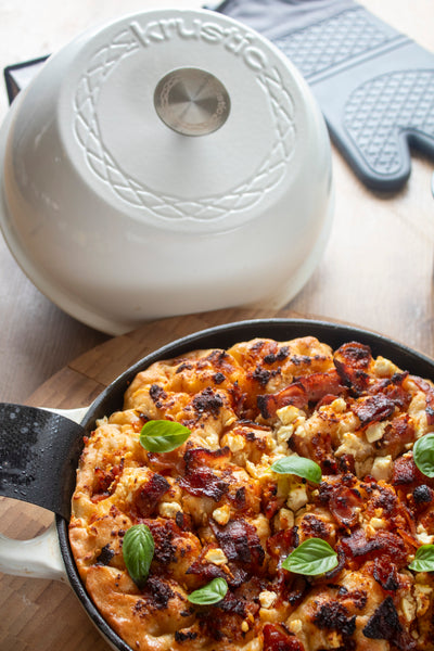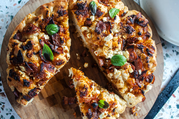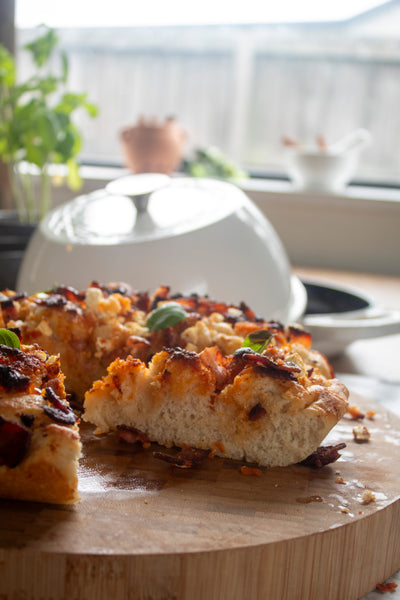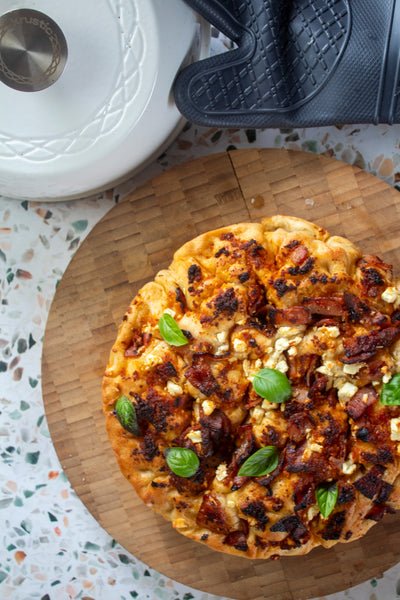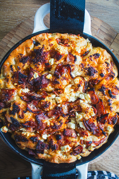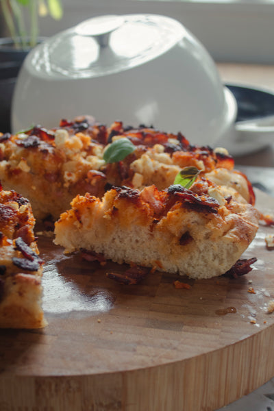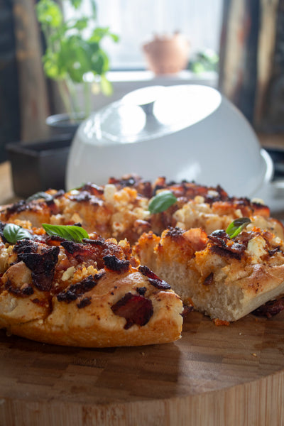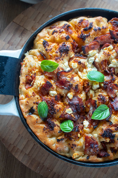 A quick and easy yeasted bread that comes together in a few hours. The secret to good focaccia is making sure there’s plenty of oil drizzled all over the bread and you mke nice deep dimples that can fill up with flavorful toppings.