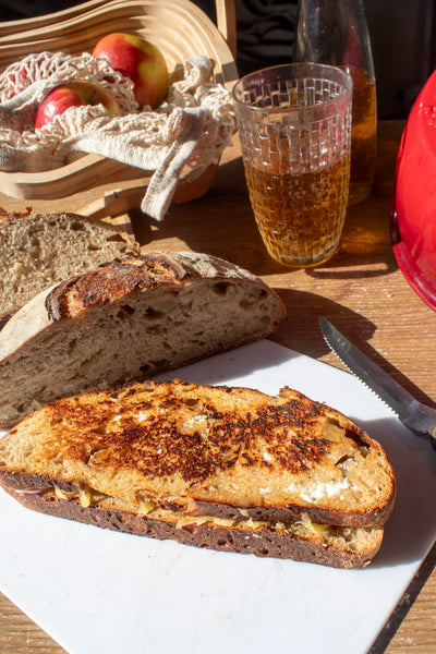 Sweet and tender apples are folded through tangy sourdough that embodies the taste of fall. It also makes the perfect grilled cheese!
