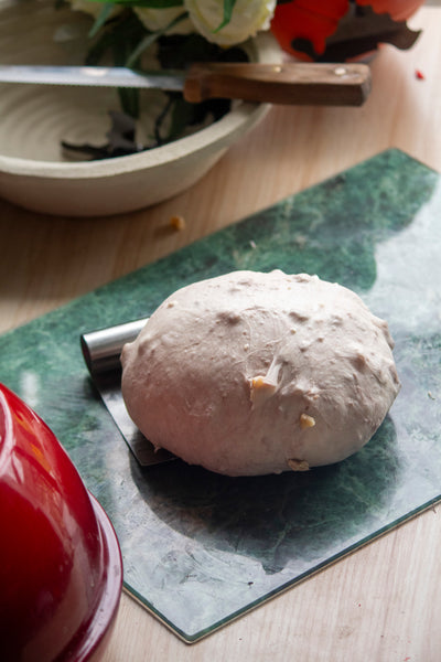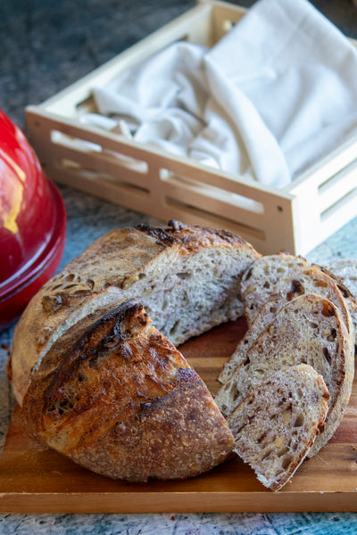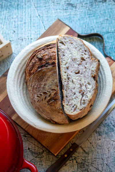 A slightly sweet, slightly sour loaf studded with walnuts perfect for eating slathered with butter and an extra drizzle of maple syrup.