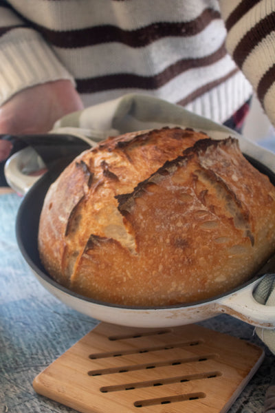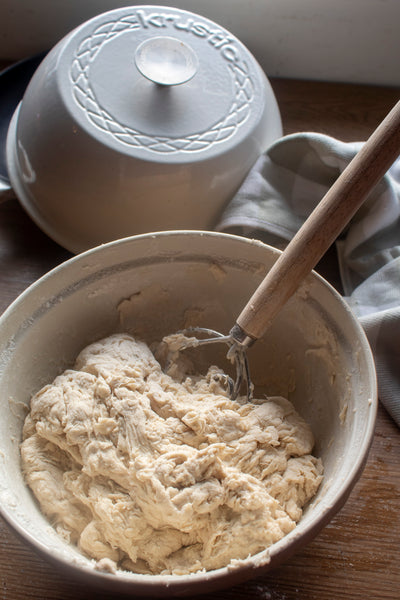9. When ready to bake, preheat Krustic in the oven for an hour. Remove dough from the fridge.