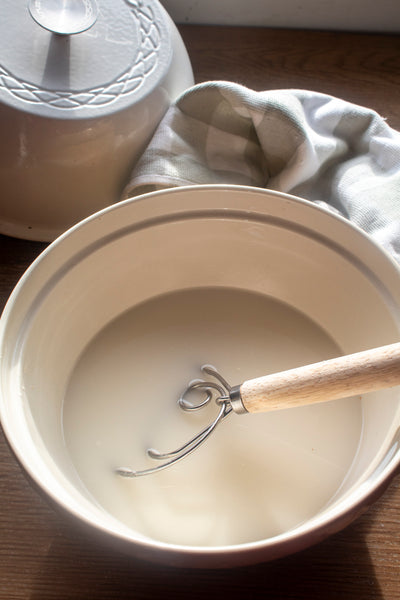 1. In an extra-large bowl or mixing tub, add the starter and water. Mix well with a dough whisk or your hands.