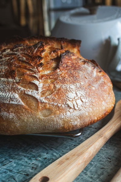 • The loaf is nice and sour thanks to the lower percentage of sourdough starter and the longer cold proofing time.