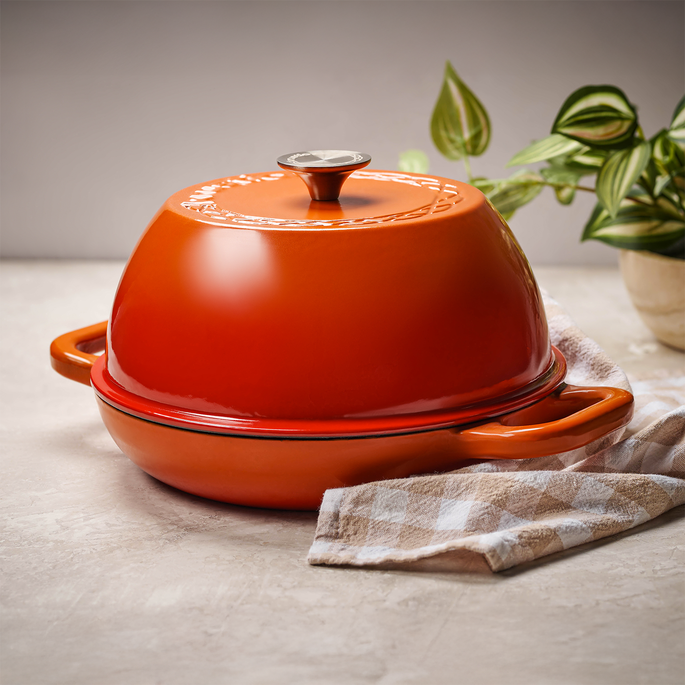 Bake your greatest loaves with zero mess! Our enameled freeform oven combines the legacy performance of cast iron with the latest generation of ceramic enamels for a multipurpose oven that’s safely nonstick. The tight-fitting lid helps trap steam and heat for fluffy loaves that spring into irresistible form.