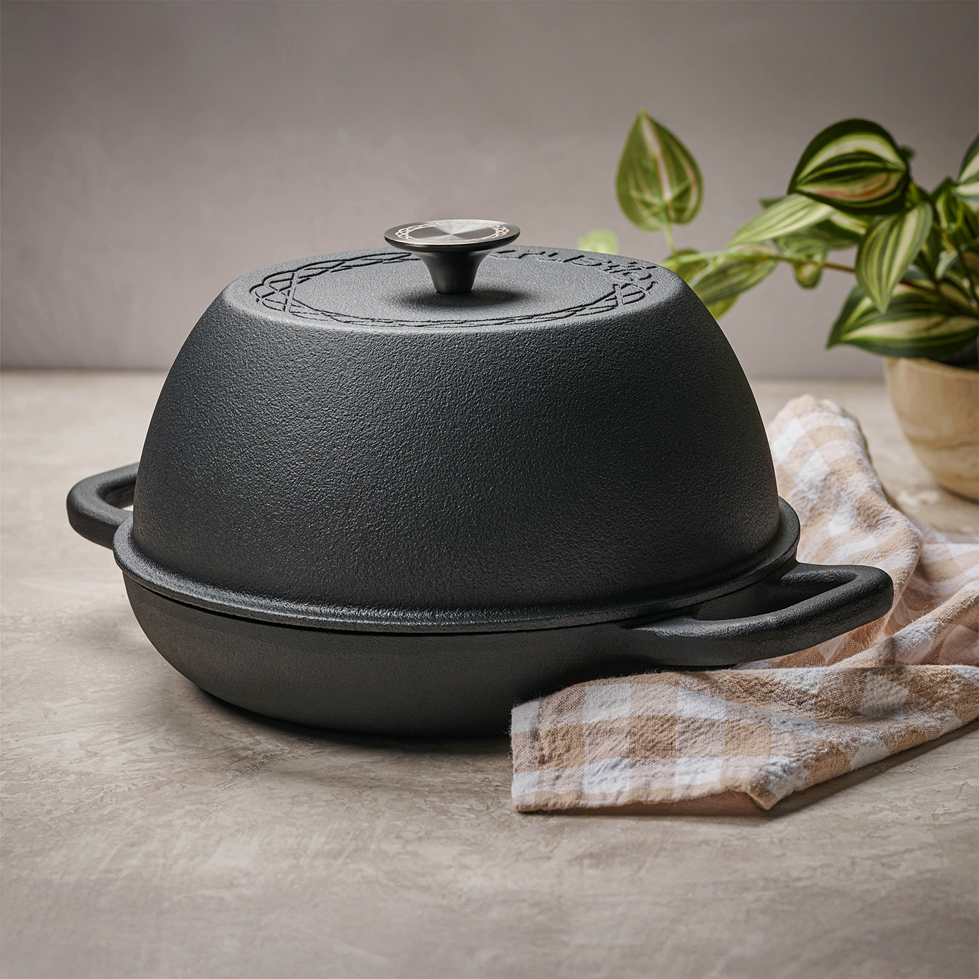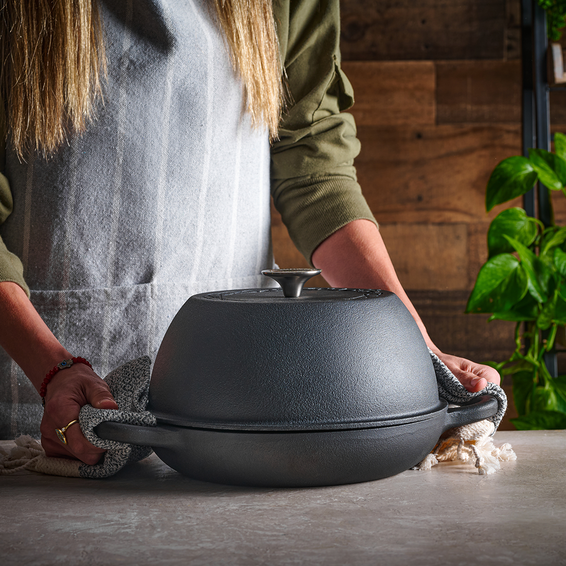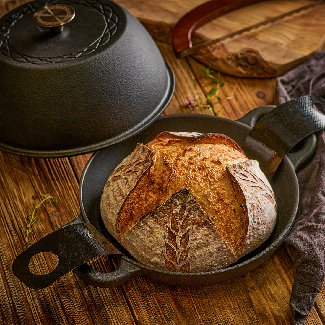 The global classic, improved in every layer. Bake the perfect sourdough boule (and cook, braise, sear, and stew). Traps and circulates steam for artisan breads with a deep crust and fluffy crumb. This raw cast iron edition comes pre-seasoned for a natural nonstick that’s been trusted by bakers for generations.